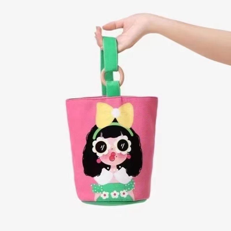 Original Illustration Portable Bucket Bag Handbag Hand Carry Out Snacks Canvas Bag Cute Out Small Bag