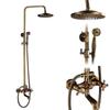 Antique Bathroom Rainfall Shower Faucet Set Wall Mount Dual Handle With Handshower Brass Bathroom Shower Mixer Tap