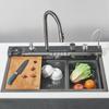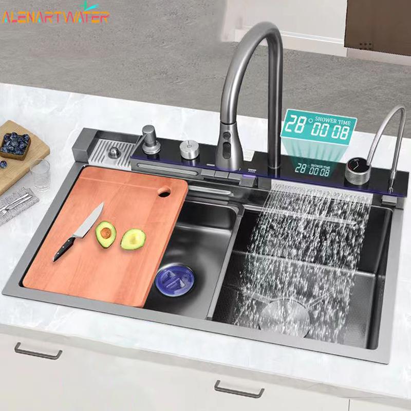 Chiuvetă cu cascadă de bucătărie din oțel inoxidabil 304 Afișaj digital Chiuvetă mare cu o singură chiuvetă cu cascadă tactilă multifuncțională