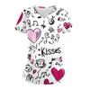 Bluză de damă cu decolteu în V și nasturi, la modă, casual, de Crăciun și Ziua Îndrăgostiților, cu imprimeu, pentru asistentă medicală uscată, bluze de serviciu pentru femei, 2 buzunare