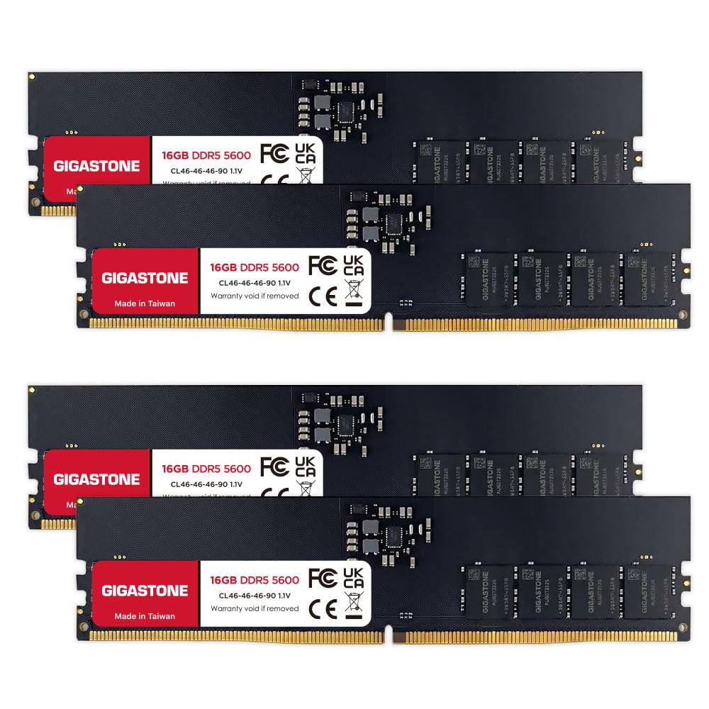 GIGASTONE DDR5 16GB x 4 DDR5 5600MHz CL UDIMM Unbuffered Memory Module Upgrade for Desktop PCs Memory (64GB Kit) PC5-44800 46-46-46-90 1.1V 288-pin
