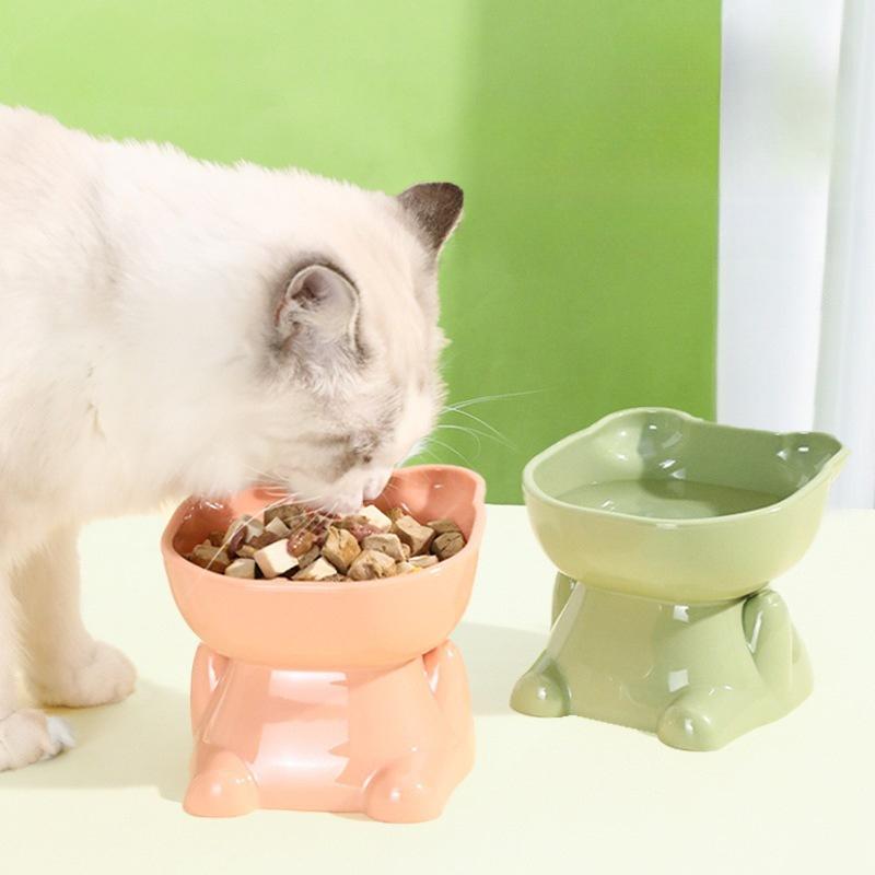 Elevated Cat Bowl, Neck Protection Bowl for Pets, Tilting Design, Cat High Foot Bowl, Cute Cat Bowl for Food and Water