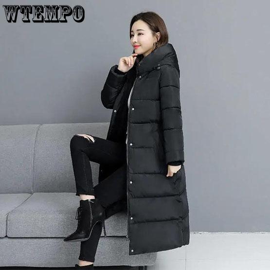 WTEMPO Jachete calde de toamnă iarnă pentru femei, cu fermoar, paltoane parka din bumbac pufos de culoare uni, jachete lungi vatuite rezistente la vânt și la frig