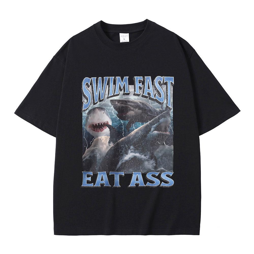 Funny Shark Print T-shirt Men Women Casual Oversized T Shirts Male Fashion Vintage Short Sleeve Unisex Soft Cotton Tshirt Tops