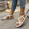 Fashion Women Sandals Flat Heels Clip-toe Casual Rome Sandals Summer Cross Narrow Band Ankle Buckle Beach Shoes for Women
