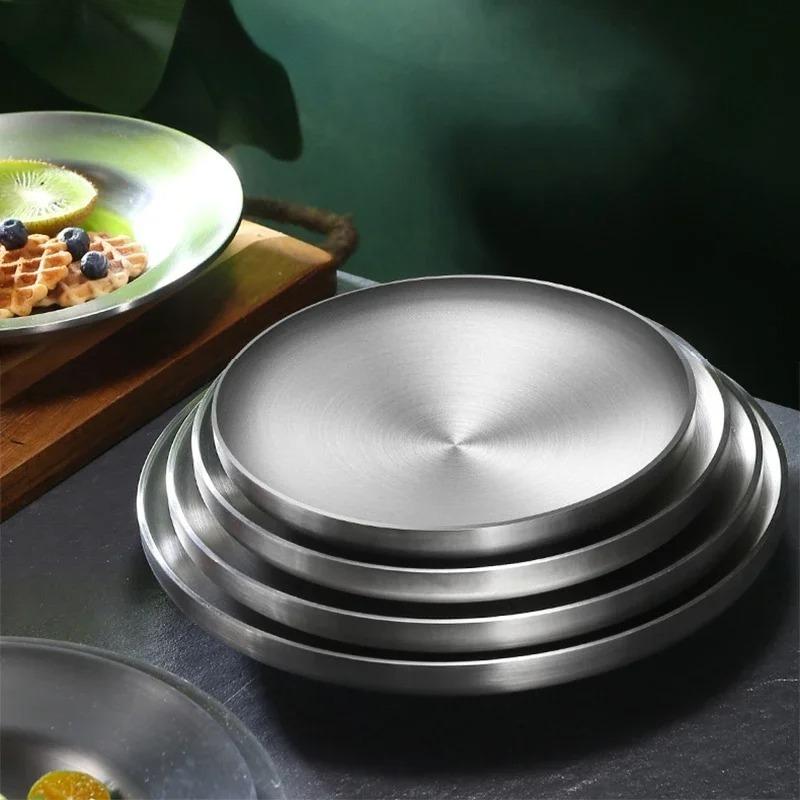 304 Stainless Steel Round Plate, Double-Walled Insulated Dinner Plate, Plates for Snack, Dishes and Fruit