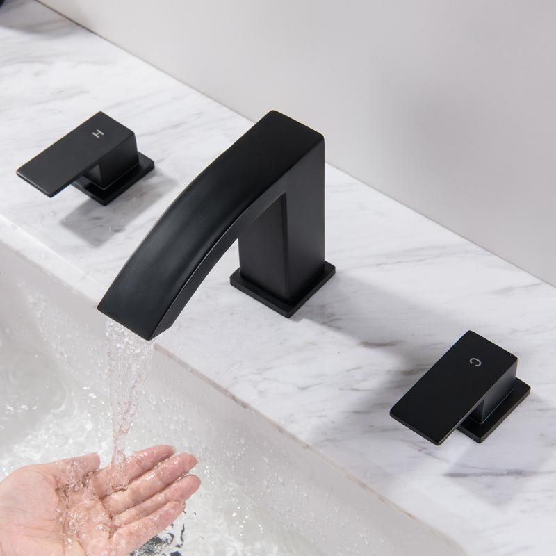 Waterfall Bathroom Basin Faucet Brushed Gold/Black Deck Mounted Hot and Cold Water Mixer Sink Tap Dual Handle Bathtub Tap