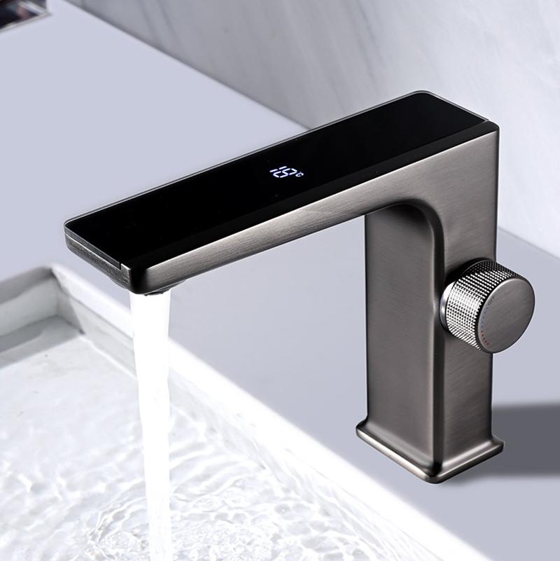 Digital Display LED Bathroom Basin Faucet Brass Black/White Hot Cold Water Sink Mixer Wash Tap Deck Mount Sink Mixer Tap