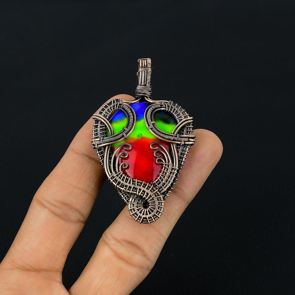 Ammolite Pendant Gemstone Handmade Jewelry, 999 Copper Wire Wrapped Pendant, Gift For Wife Jewelry