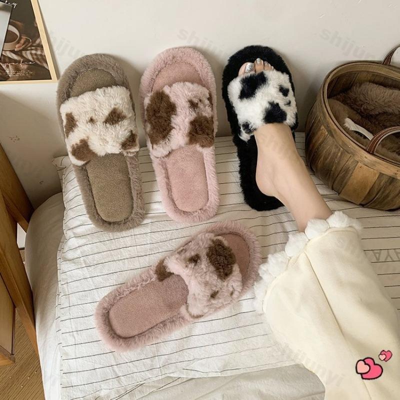 Fashion Women's One Word Slippers 2025 Autumn Winter New Cute Lightweight Non Slip Plush Shoes Comfortable Fashion Slip on Flat Slippers