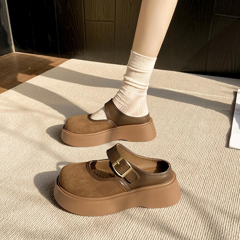 Fashion CRLAYDK Vintage Women's Comfort Platform Mules Adjustable Buckle Slip On Slippers Closed Toe Casual Walking Shoes for Lady