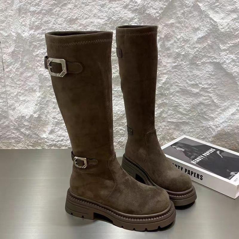 Fashion Flats Women High Boots Suede Winter Designer Shoes Fashion Casual Woman's Boots 2025 New Dress Brand Goth Mujer Chelsea Botas