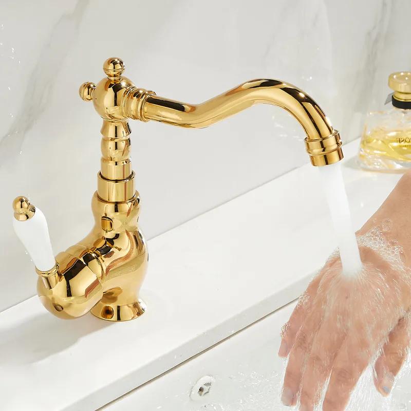 European Style Gold Basin Faucet Chrome Hot and Cold Mixers Antique Wash Basin Faucet Taps 360 Rotating Kitchen Faucet