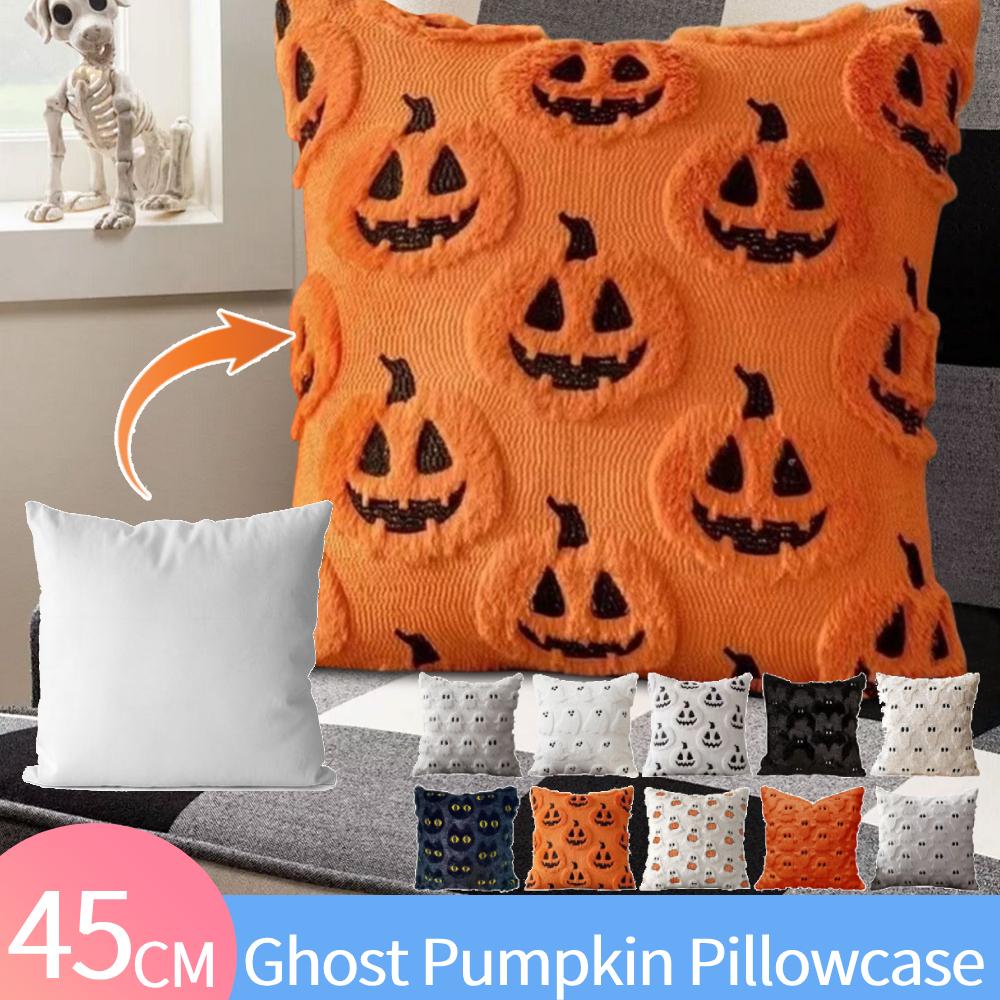 2025 Halloween Ghost Pumpkin Pillowcase Washable Plush Faux Fur Pillow Case Ghost Pumpkin Throw Pillow Cover for Couch Sofa Gift