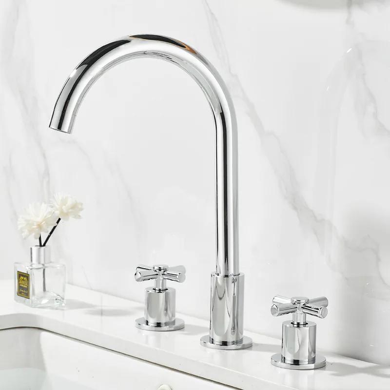 Black Basin Faucets Brass Polished Chrome Deck Mounted Bathroom Sink Faucets 3 Holes Double Handles Hot And Cold Water Tap Gold