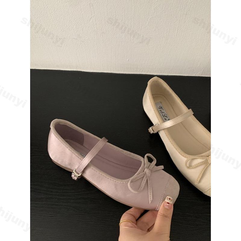 Fashion Bow-knot Mary Janes Women's Shoes Height Increasing 2025 Spring New Buckle Strap Ballet Dance Shoes Round Toe Comfortable Flats