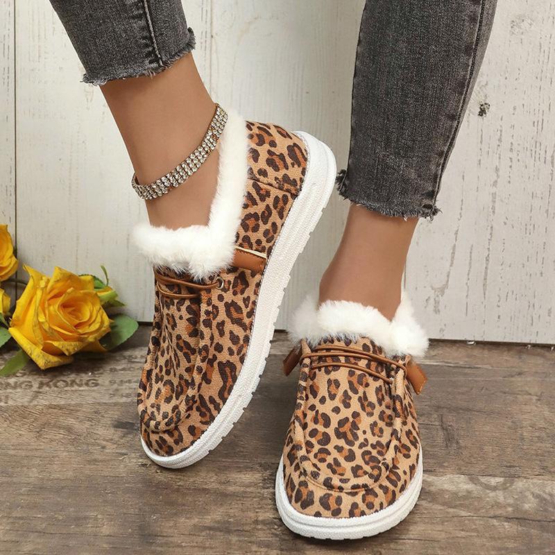 Fashion Trendy Flat Bottom Women's Shoes 2024 Winter Leopard Print Design Versatile Flat Bottom Sleeve Foot Plush Oversized Snow Boots