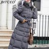 BITCED Winter Women's Cotton Coat - Extended Length with Large Fur Collar Thickened Long-Length Women's Down-Filled Cotton Jacket