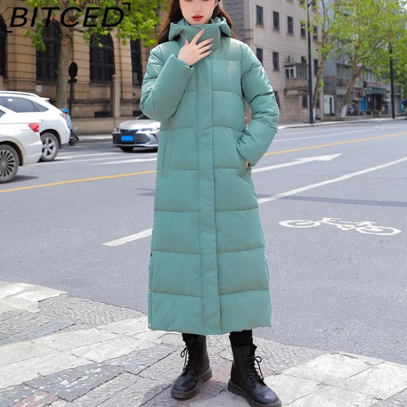 BITCED Winter Cotton Coat for Women - Extended Length, Knee-Length, Slim Fit, Bestie Style, Warm and Thickened Mid-Length Quilted Jacket