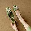 Fashion Retro Square Head Flower Buckle Strap New Women's Sandals 2025 Summer Slingback Med Heels Office & Career Shoes Sandalias Mujer