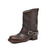 Fashion 2025 New Buckle Round Toe Geuine Leather Boots for Women Mid-calf Tube Shoes Fashion Autumn Winter Square Heel Boots Party Shoes