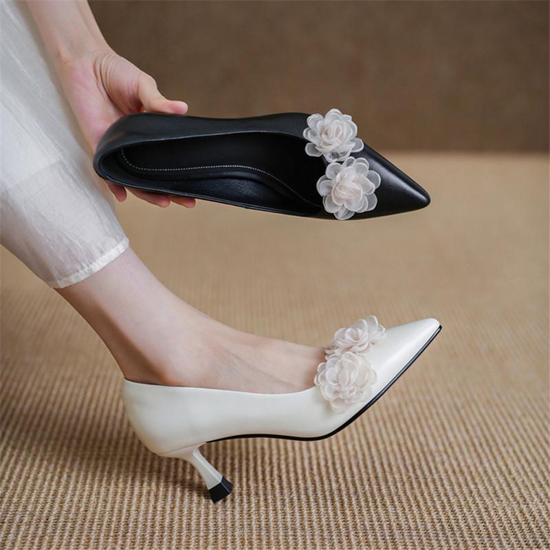 Fashion New Spring/autumn Genuine Leather Women Shoes Pointed Toe Shoes for Women Fashion Flower Shoes High Heels Handmade Women Pumps