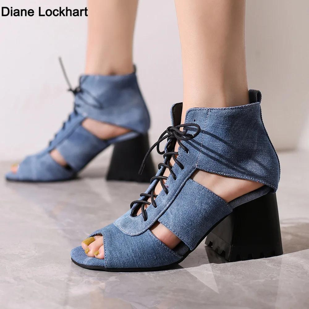 Fashion Fashion Peep Toe Ankle Boots For Women Sandals Shoe Sexy Denim High Heels Platform 2025 Summer Ladies Leopard Lace Up Mujer 41 4