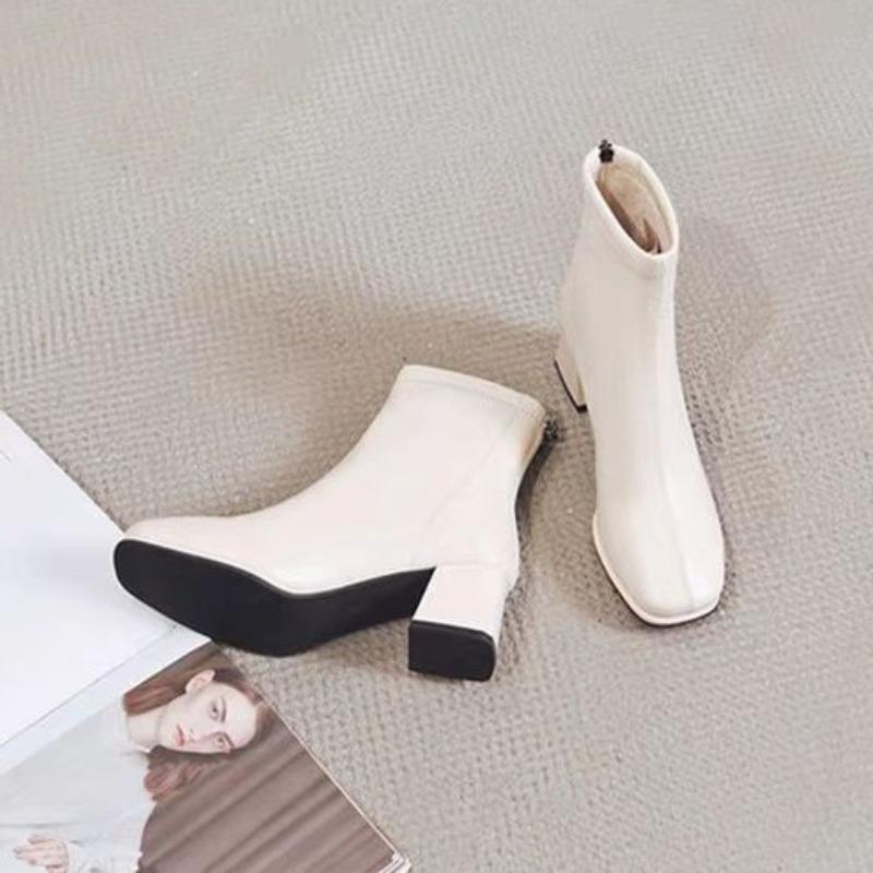 Cizme de modă noi cu toc gros, cizme de toamnă din piele moale, cu vârf pătrat, cizme subțiri, cizme cu toc înalt femei
