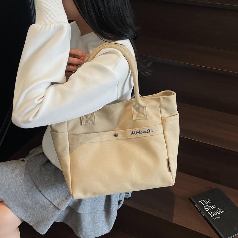 New simple canvas bag women's large-capacity casual tote bag student class bag going out shoulder handbag