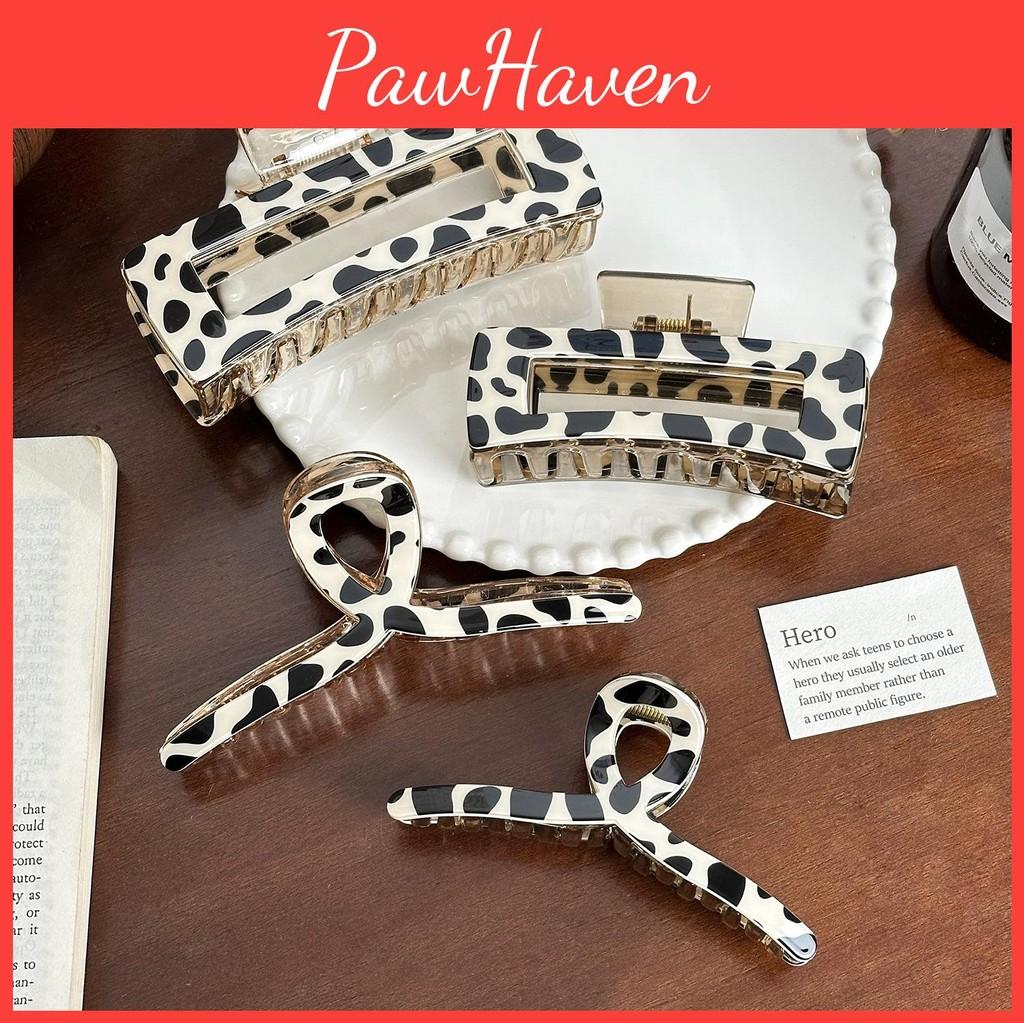 Clips Mare de Păr cu Gheare Retro cu Imprimeu Vacă Design Elegant Ideal Pentru Coafuri la Modă pentru Femei