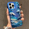 Japanese Waves Electroplate Silver IMD Case for IPhone 16 11 12 13 14 15 Pro Max SE 7 8 Plus X XS XR Shockproof Hard Cover