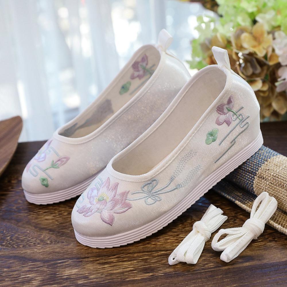 Fashion Inner Height Increasing Wedge Shoe Women Ethnic Style Retro Chinese Round Head Hanfu Wedding Shoes