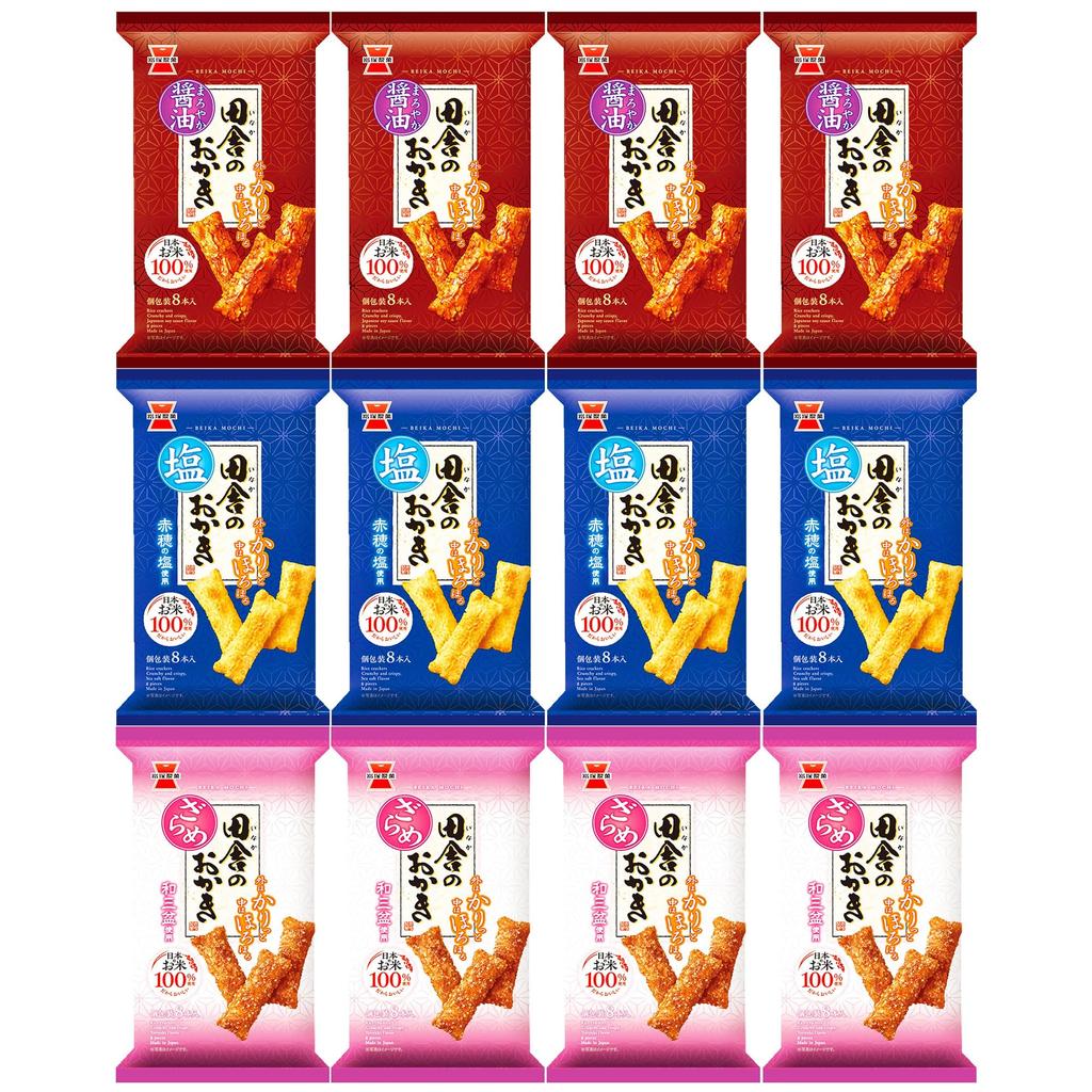 Iwatsuka Seika Countryside Rice Crackers Brown 3 Flavors Total 12 Bags [Soy Sauce, Salt, Sugar] Assorted,