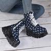 Bocanci de damă țesuți mărime mare, bocanci scurți fashion vechi cu talpă groasă, fermoar lateral, cu toc înalt, versatili pentru primăvară și toamnă