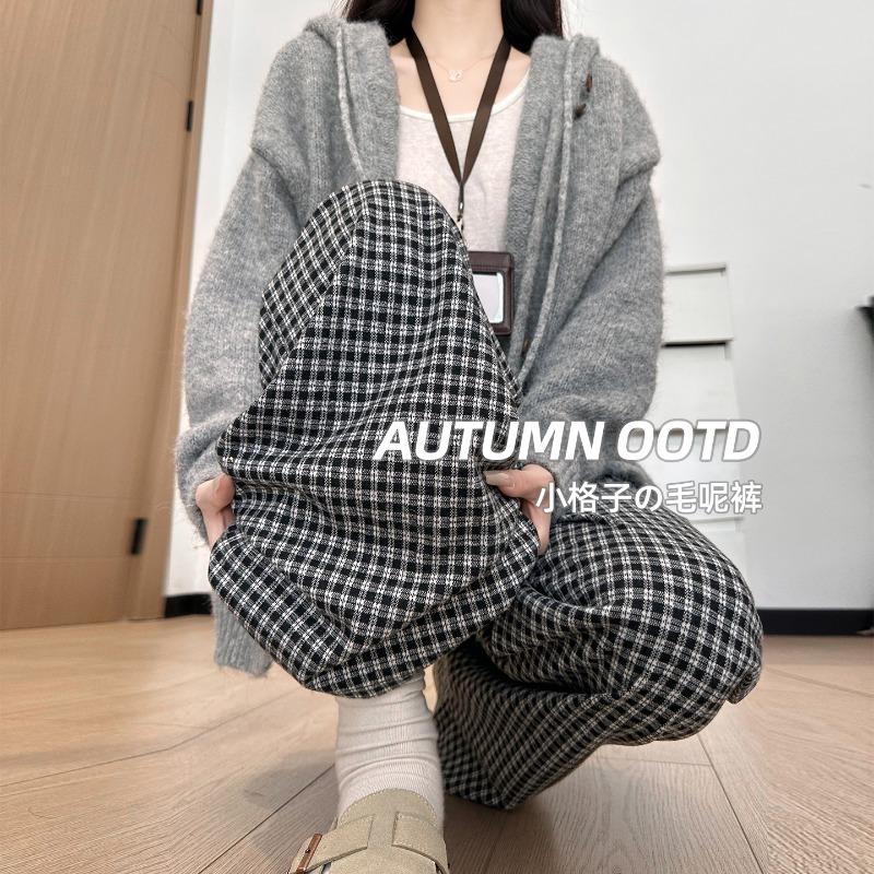 Small plaid pants children loose and lazy style new autumn casual straight narrow wide-leg pants