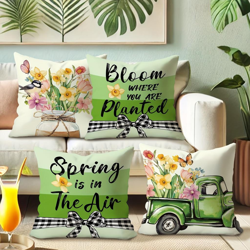 Charming Spring-inspired Pillow Cover: Floral Arrangements, Vintage Truck, and Uplifting Quotes, sofa Chair cushion cover