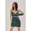 Export Pure Original AST * Classy Party Swing Collar Black Dark Green Smooth Material Imitation Acetic Acid Satin Long Sleeve Dress