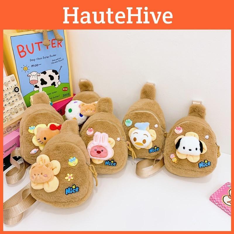 Fashionable Melty Plush Sling Bag For Children With Adorable Prints And Lightweight Design
