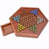 Wooden Chinese Checkers Set With Storage Drawer Children Adults Wooden Chess Board Game Glass Marble Christmas Gift