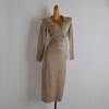French Style New Arrival Solid Color Polo Collar Deep V Cross Waist One Button Knitting Dress Women's Spring & Fall Split Dress