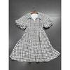 Foreign Trade Order Entr0 Retro Preppy V-neck Puff sleeve A Word Plaid Dress