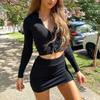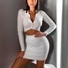 Short Skirt Suit Women V-neck Button Cardigan White Black Blue Women