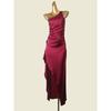 Export Lu's Spring Fashion New Character Sexy Open Back Smooth Fabric Shoulder Asymmetrical Elegance Dress