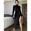 Single Lu's Spring New Arrival High Quality Velvet Stand-up Collar Cinched Fashionable with Side-Slit Beautiful Adult Lady like Woman Dress Female