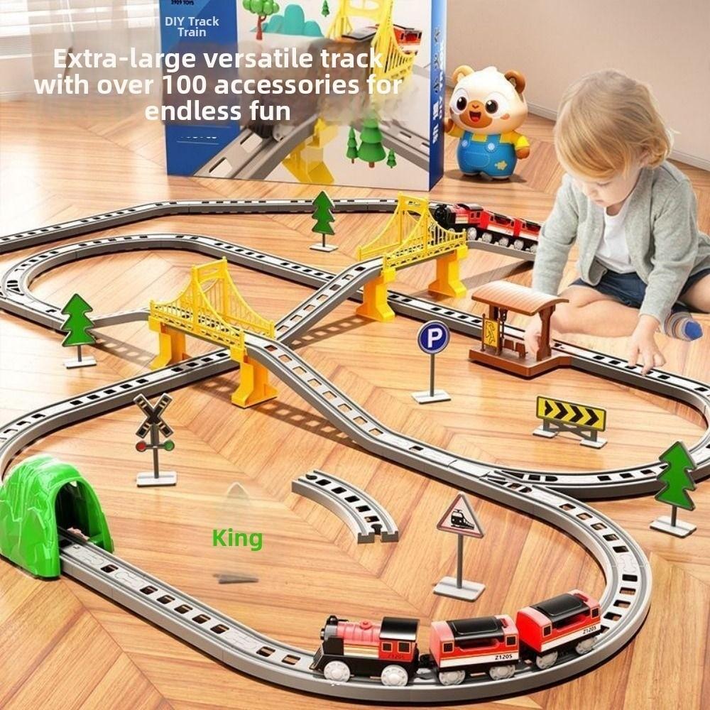 with Box Train Toys Set Plastic Kids Electricity Track Rail Car Toys