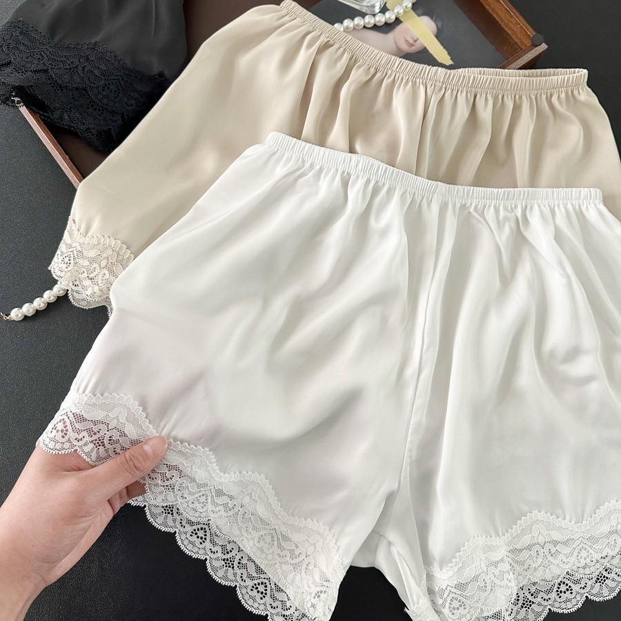 Pantaloni scurți fustă de siguranță din mătase imitație satin - Leggings de casă largi trei sferturi