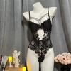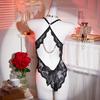 Ultra Sexy Crotchless Black Lingerie Women Lace Hollow Bodysuit Erotic Pajamas Teddy Babydoll Dress Deep V Open Bra Underwear