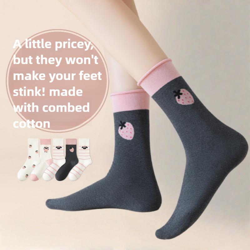 Female Spring and Autumn Cartoon Lovely Deodorant Boneless Tube Cotton Socks