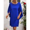 Spring and Summer New Fashion European and American Style round Collar, Blue Loose Casual Half Length Cape Sleeve Dress Dress Dress Dress