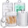 4 Pack Acrylic Qtip Holder Dispenser for Cotton Swabs, Balls, Pads, Floss Picks- Small Clear Plastic Canister Apothecary Jar Set, Bathroom Essentials Accessories Decor, Vanity Makeup Storage Organizer
